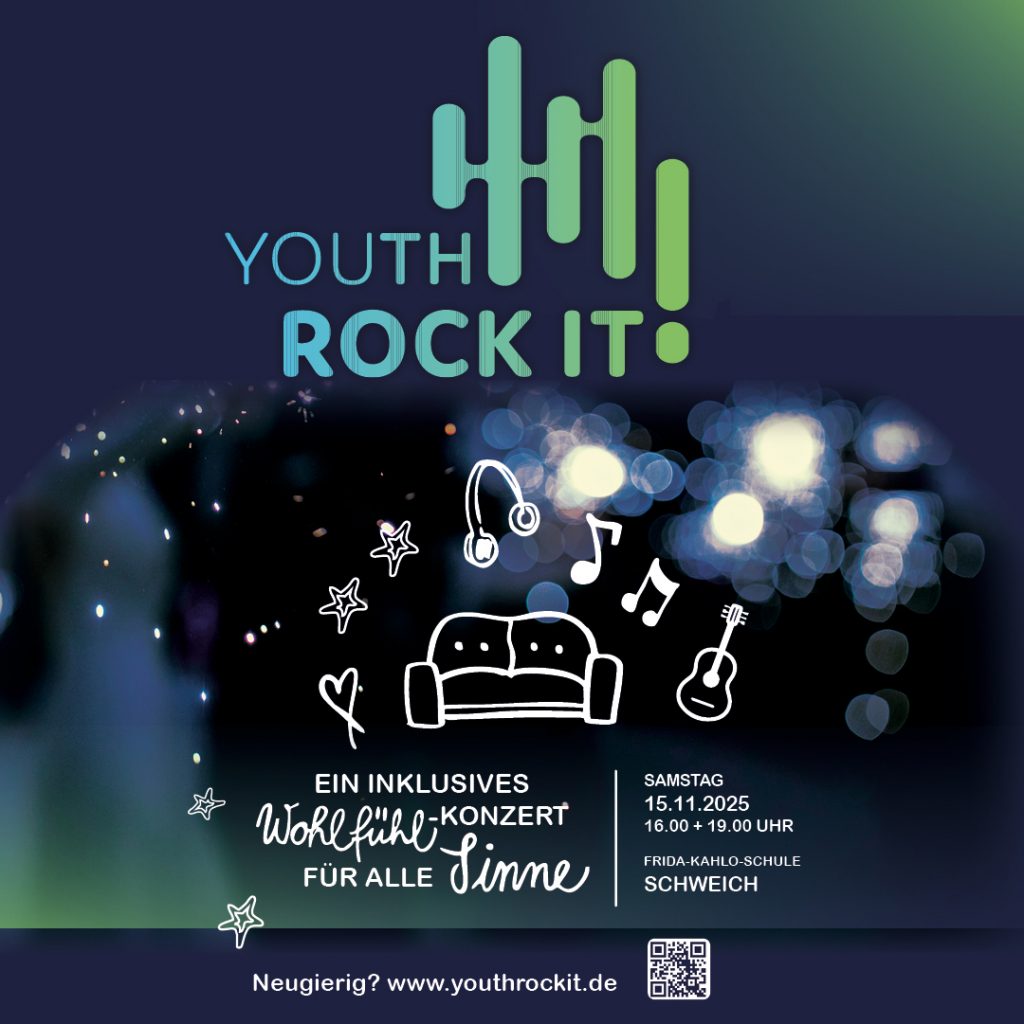 Seit November 2023 probt der YouTH-Rock it!!!-Chor regelmäßig im Foyer der Levana-Schule in Schweich. Der Zugang zu den Proben ist barrierefrei. Im Chor sind Schüler:innen aller Schularten, Jugendliche, Erwachsene, Eltern, Sorgeberechtigte und alle, die Lust am gemeinsamen Singen haben herzlich willkommen.